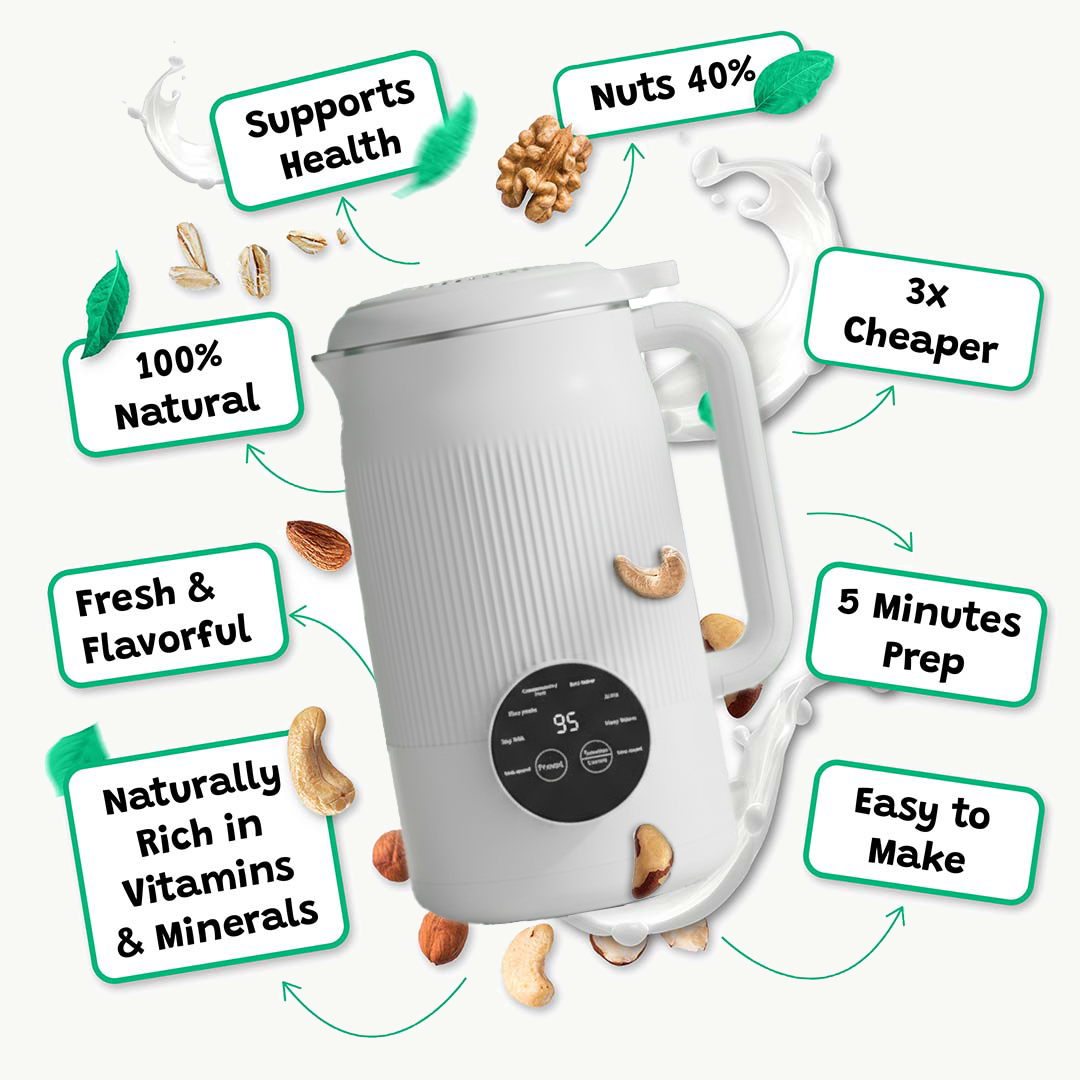 Simplify your kitchen with this versatile machine that creates fresh milk, juices, and baby food—all in one compact device! Enjoy healthy living and declutter your countertop effortlessly.